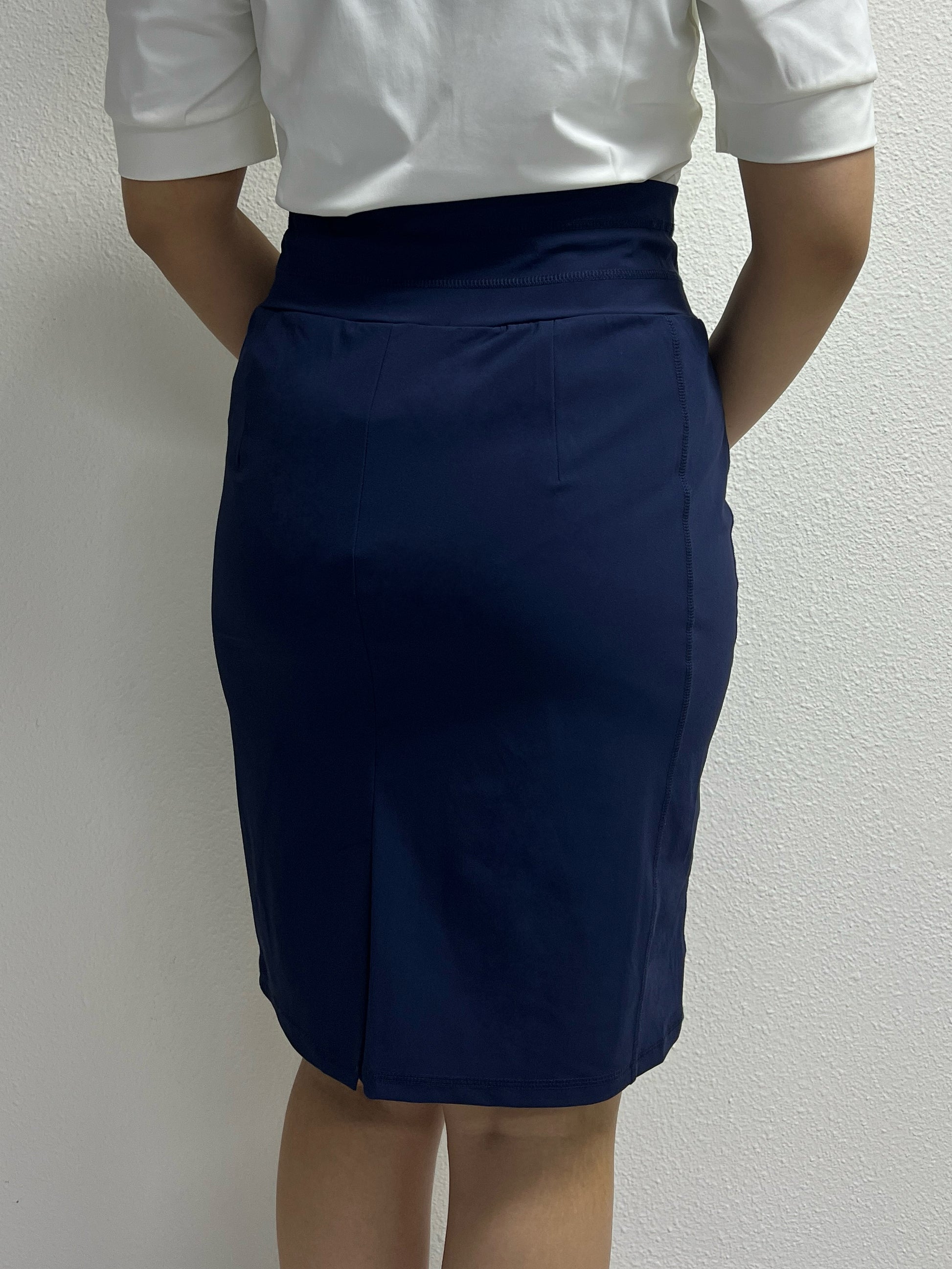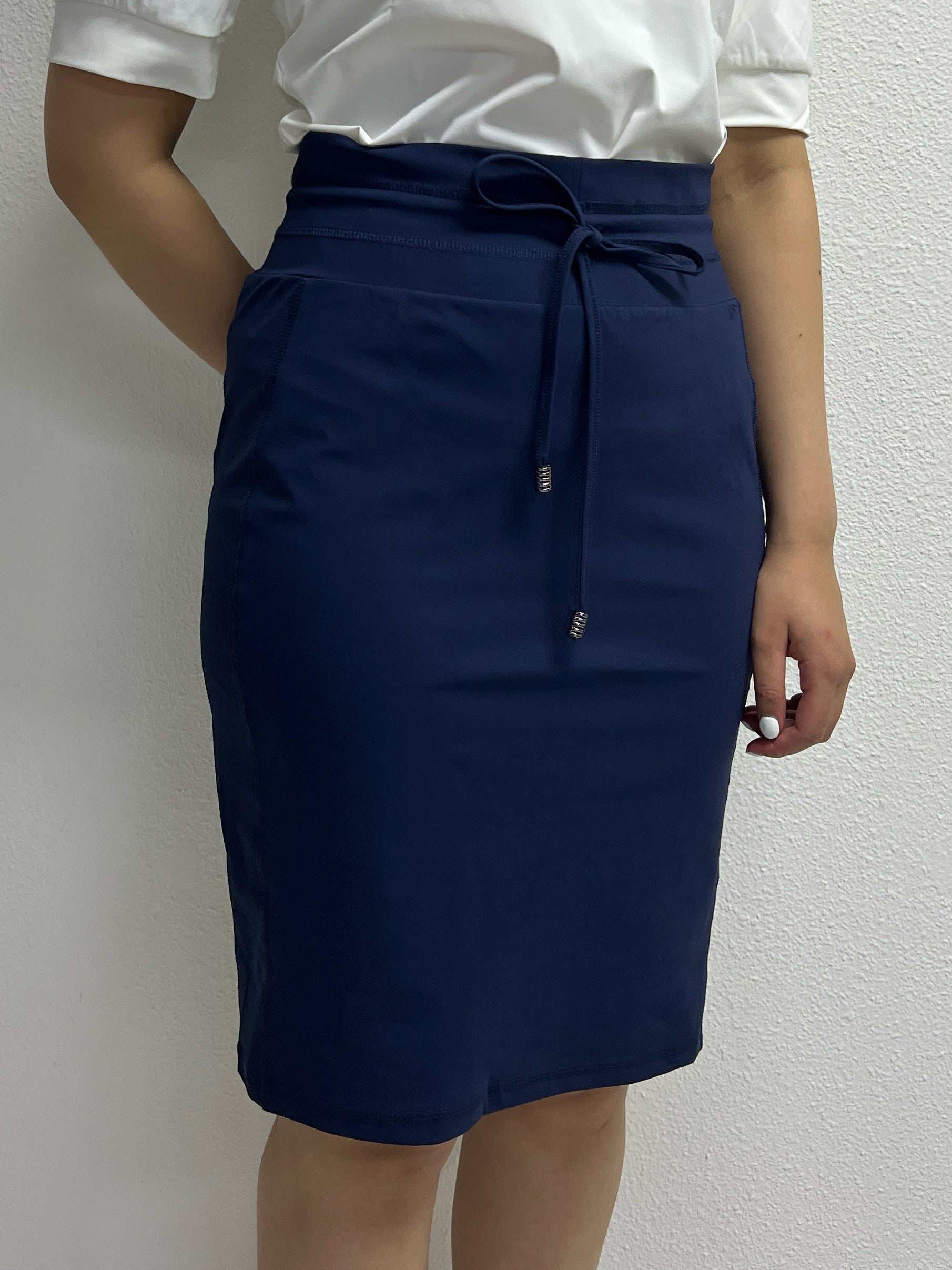 Het recht vallende model en de elastische tailleband met verstelbaar touwtje zorgen voor een perfecte pasvorm. Dankzij het high waist design en de loopsplit aan de achterkant biedt deze rok zowel bewegingsvrijheid als een elegante uitstraling.